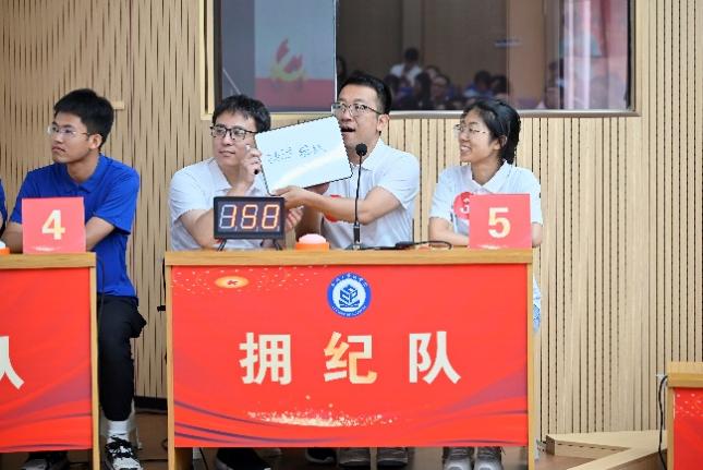 会上进行了“学纪筑基,守正创新”党纪学习教育知识竞赛,共有来自不同支部的18名师生党员代表组成了6支队伍参与竞赛。竞赛分为热身题、必答题、抢答题、风险题以及后援团答题五个环节。参赛选手依托扎实的党纪知识储备,表现出极强的反应能力和专业素养。经过紧张激烈的角逐,化学系党支部荣获一等奖,机关和力学系党支部荣获二等奖,数学系、物理系党支部和学生党总支荣获三等奖,化学系党支部的宋禹同志荣获全场个人答题MVP奖。