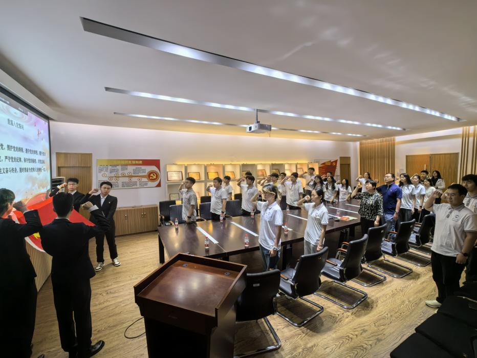 活动最后,李晓璐带领全体党员师生面向党旗庄严宣誓,重温入党誓词。党课在嘹亮的校歌声中圆满落幕。