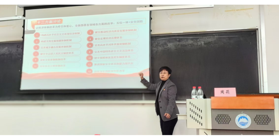 报告会邀请学校学习宣传贯彻党的二十届三中全会精神宣讲团成员、党委党校副校长周莉作《绘就进一步全面深化改革新蓝图——学习贯彻党的二十届三中全会精神》专题报告,围绕历史沿革、主体内容、发展目标、未来走向等四个方面对党的二十届三中全会精神进行了系统阐释和深入解读。周莉强调党的二十届三中全会是在以中国式现代化全面推进强国建设、民族复兴伟业的关键时期召开的一次十分重要的会议。青年学生党员要从历史长河、时代大潮中,正确理解和把握党的二十届三中全会的重要里程碑意义,切实增强进一步全面深化改革、推进中国式现代化的责任感和使命感。牢记初心使命,勇于担当责任,积极参与到全面深化改革的伟大事业中去,以青春力量为进一步全面深化改革、推进中国式现代化挺膺担当。