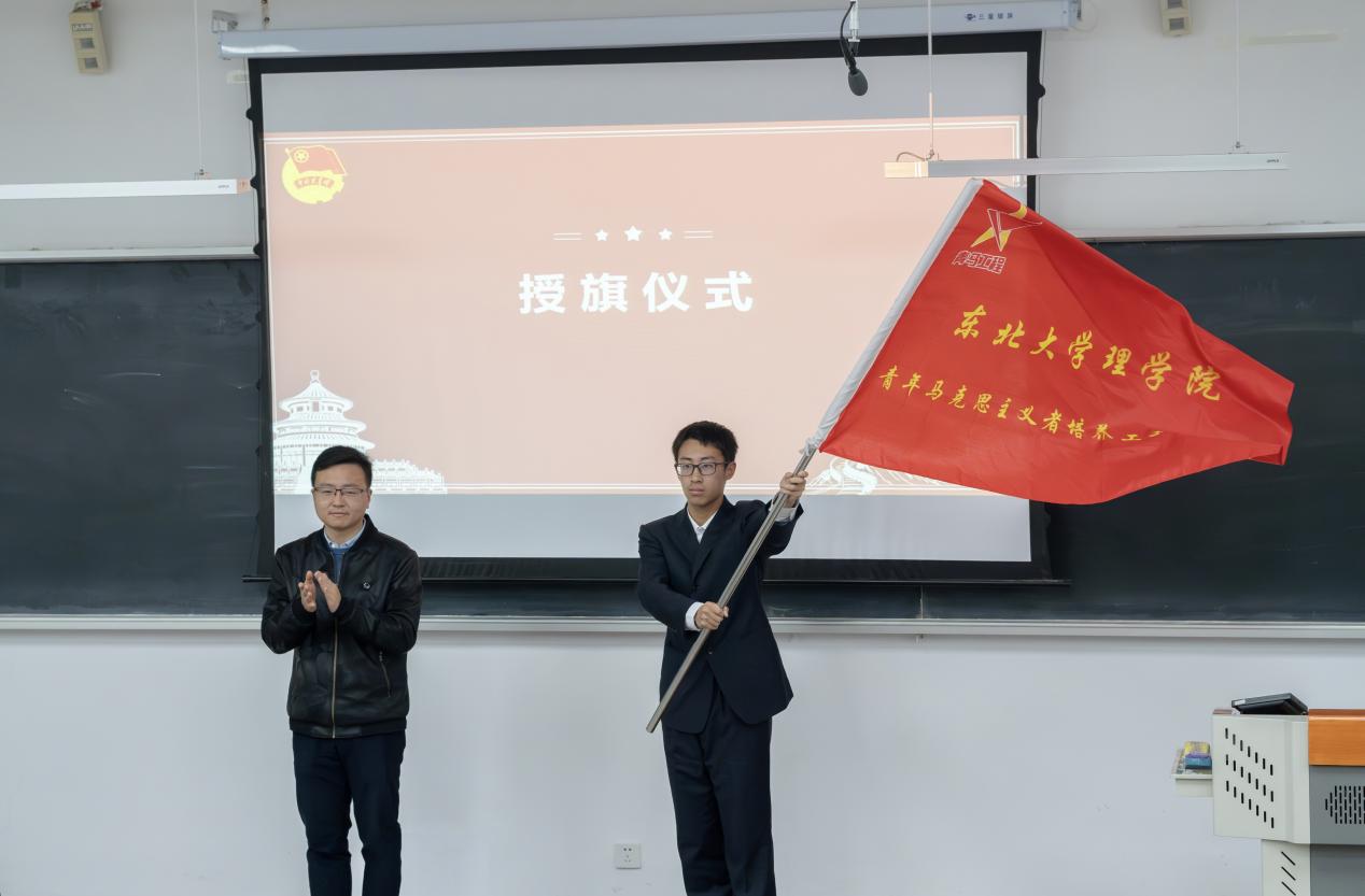 授旗仪式中,张兆磊为必威体育 第十七期青马工程学员代表授旗。