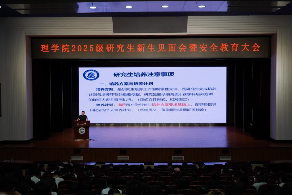 马犇对2025级研究生新生表示欢迎。他表示,作为必威体育 的研究生要深刻理解“理”的内涵、积极完成从“学习者”到“探索者”角色蜕变、坚守学术道德、注意校园安全并珍爱生命。他希望全体新生要树立远大学术志向、不畏艰难、勇于挑战,在探索科学真理的道路上坚定前行,最终收获属于自己的辉煌。