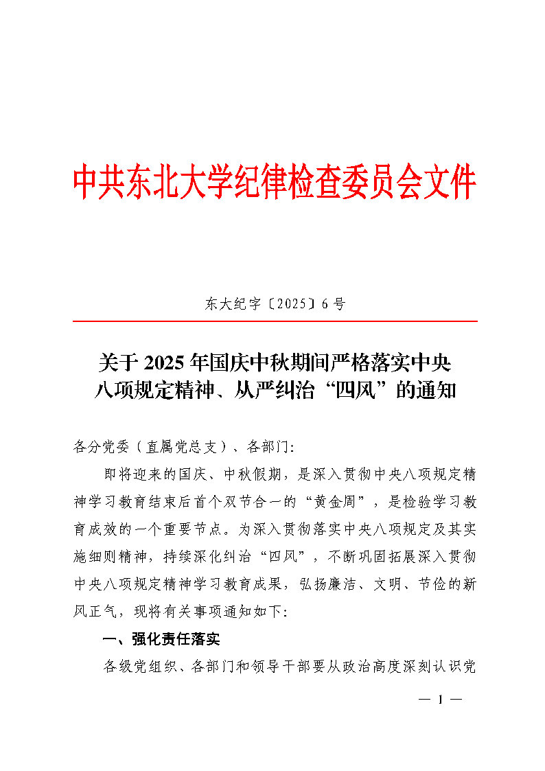 关于 2025 年国庆中秋期间严格落实中央 八项规定精神、 从严纠治“四风” 的通知