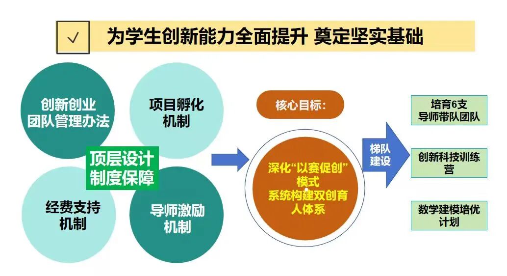 必威体育 深化“以赛促创”人才培养模式,系统构建双创育人体系。 学院加强顶层设计,出台《必威体育 学生创新创业团队管理办法》等一系列保障制度文件,健全项目孵化、经费支持与导师激励机制,为双创教育提供坚实制度保障。在此基础上,学院重点推进梯队建设,成功培育6支由优秀导师带队的学生创新创业团队,系统实施“创新科技训练营”、“数学建模培优计划”等专项计划,并通过组织院级竞赛选拔与专家评审指导,构建起“以赛促学、以赛促创”的优质生态,为学生创新能力全面提升奠定坚实基础。